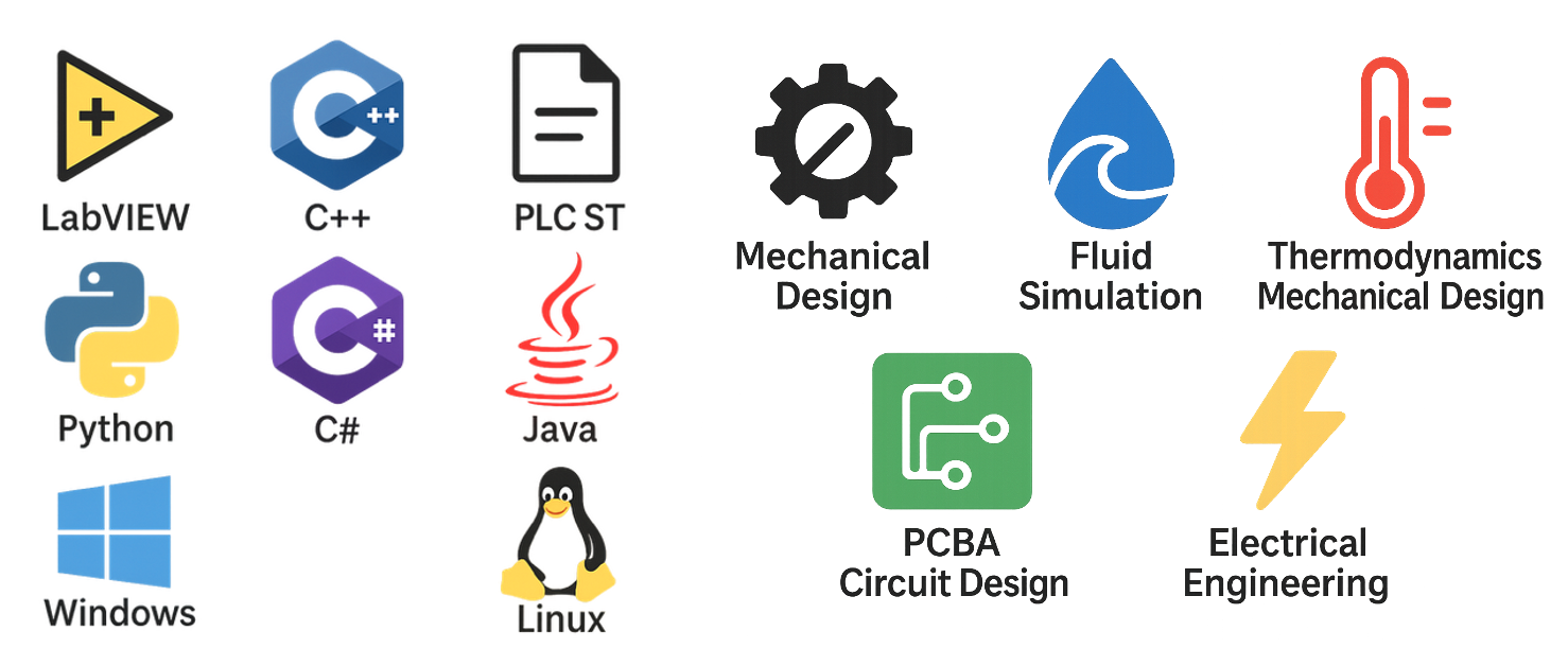 - Programming ability, LabVIEW, C++, PLC ST, Python, C#, Java and other mixed languages and cross-platform development